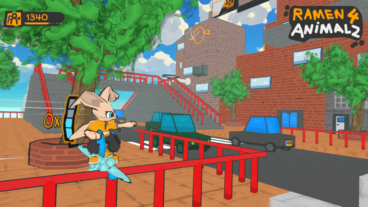 RAMEN4ANIMALZ is a fast-paced platformer blending the arcade chaos of Crazy Taxi with movement inspired by Sonic Rush.